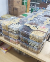 Rp 50.000Oleh Oleh Haji Paket PLATINUM MINA berisi : Kemasan Toples Akrilik Bentuk Kotak Kurma Tunis Tangkai 120 gr Kacang Arab Manis 70 gr Kacang Arab Original 70 gr Kacang Almond 70 gr