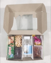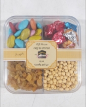 Rp 55.000Paket oleh oleh haji Platinum SAFA berisi sebagai berikut : Kemasan Toples Akrilik Bentuk Kotak Kacang Arab 70 gr Kismis Manis 100 gr Kacang Almond 70 gr Cokelat Cross 5 pcs